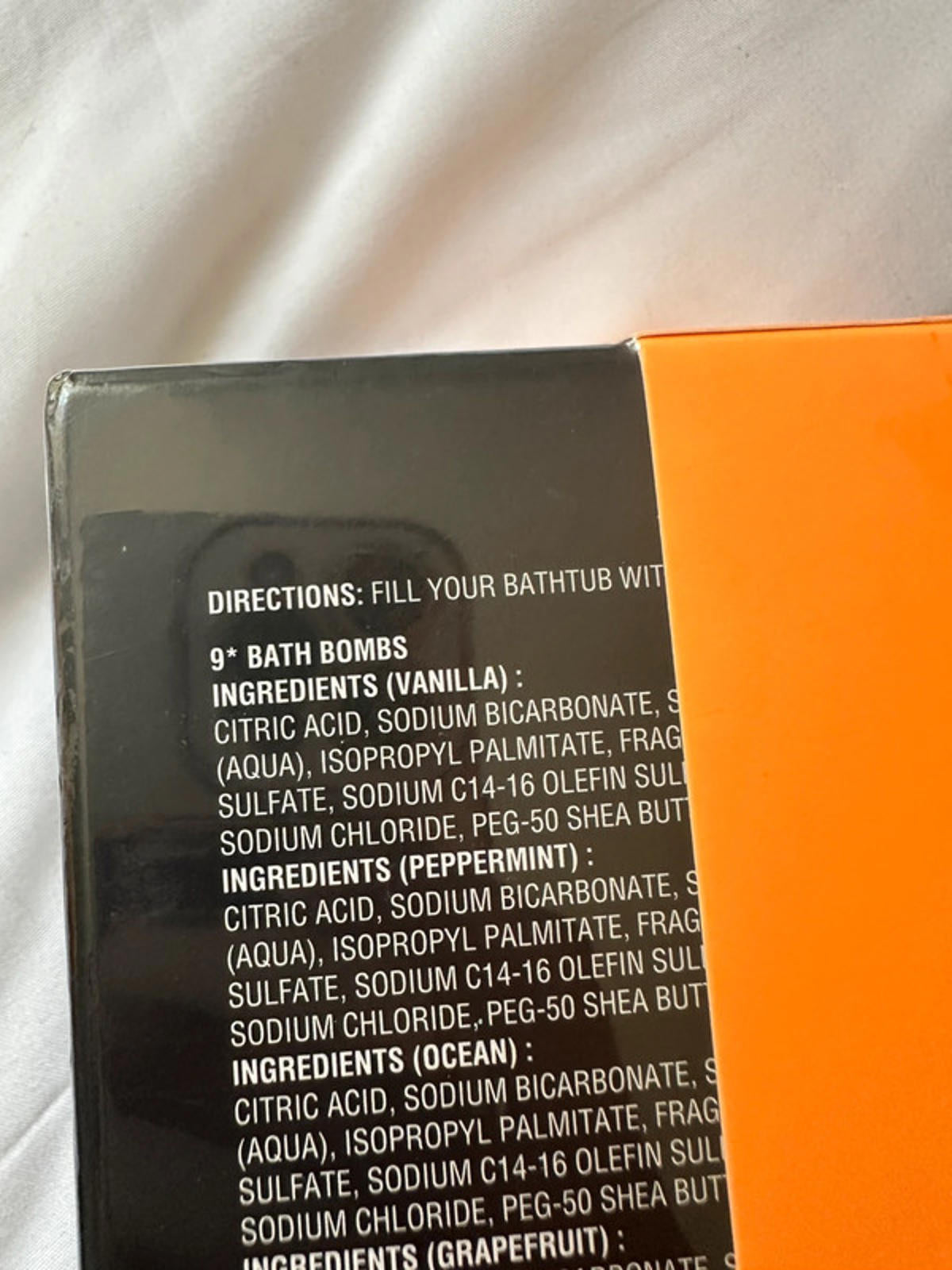 Set of 9 bath bombs in assorted scents including vanilla, peppermint, ocean, and grapefruit.