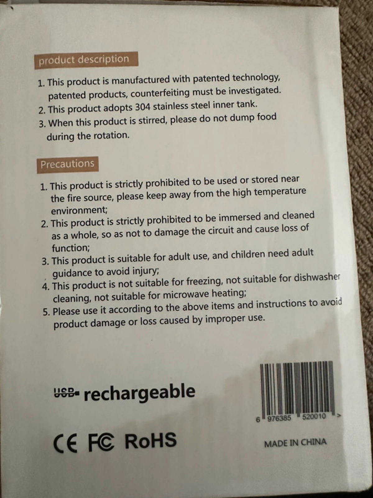 Designed for convenience, this innovative cup incorporates a powerful automatic mixing feature that requires no plugging in. Made from durable 304 stainless steel, it is easy to clean and maintain hygiene.