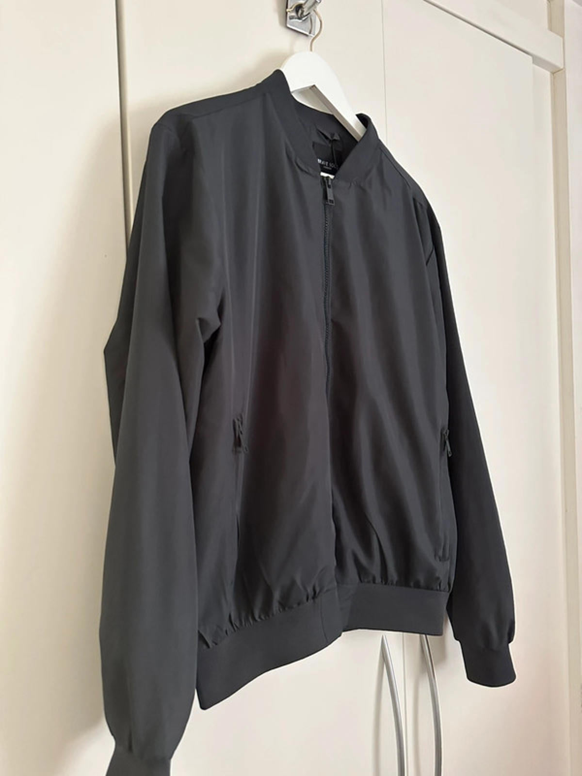 Designed for effortless cool, this jacket features a sleek black finish and a contemporary silhouette.