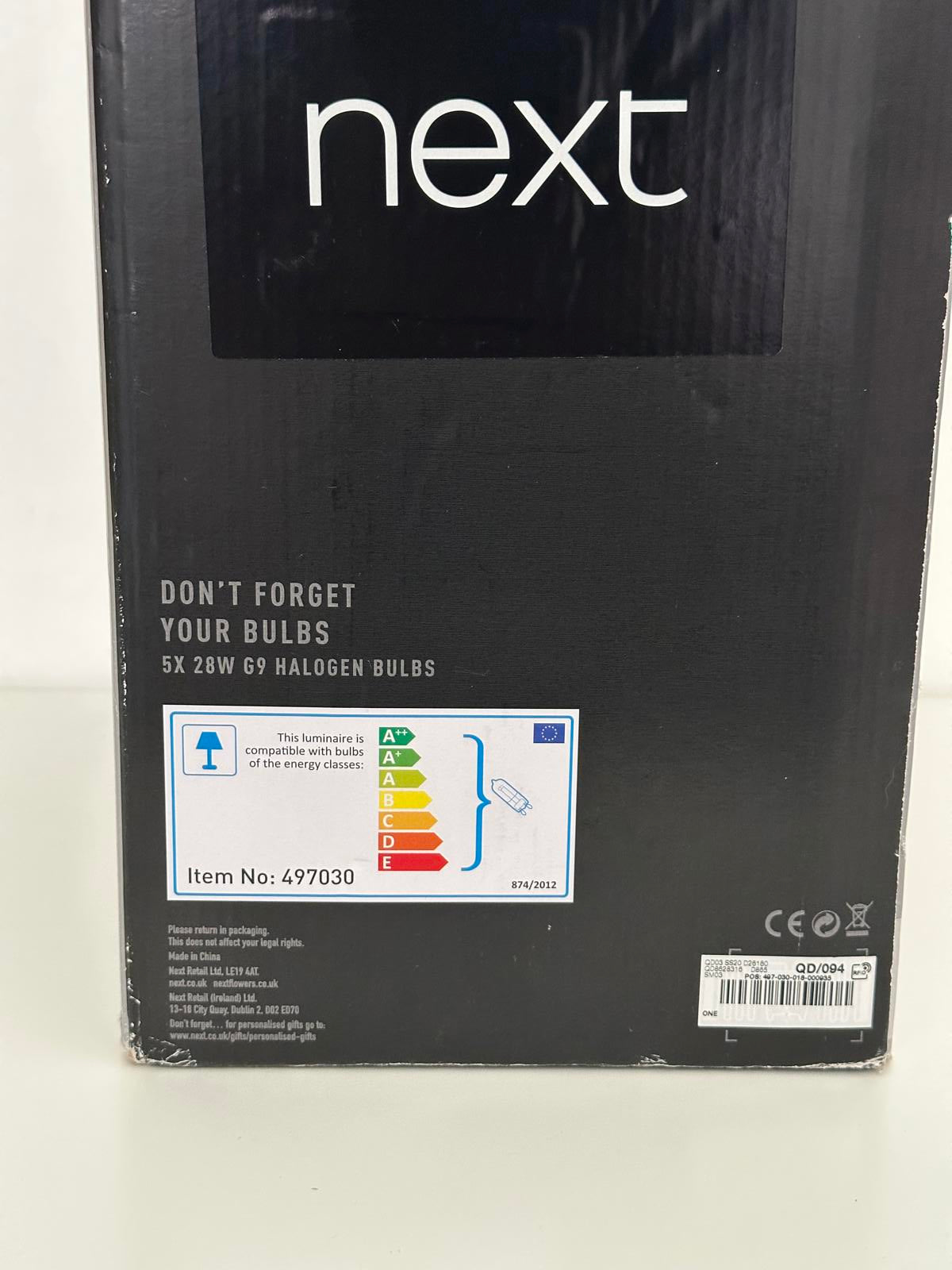 Requires 5 x 28W G9 halogen bulbs (not included)