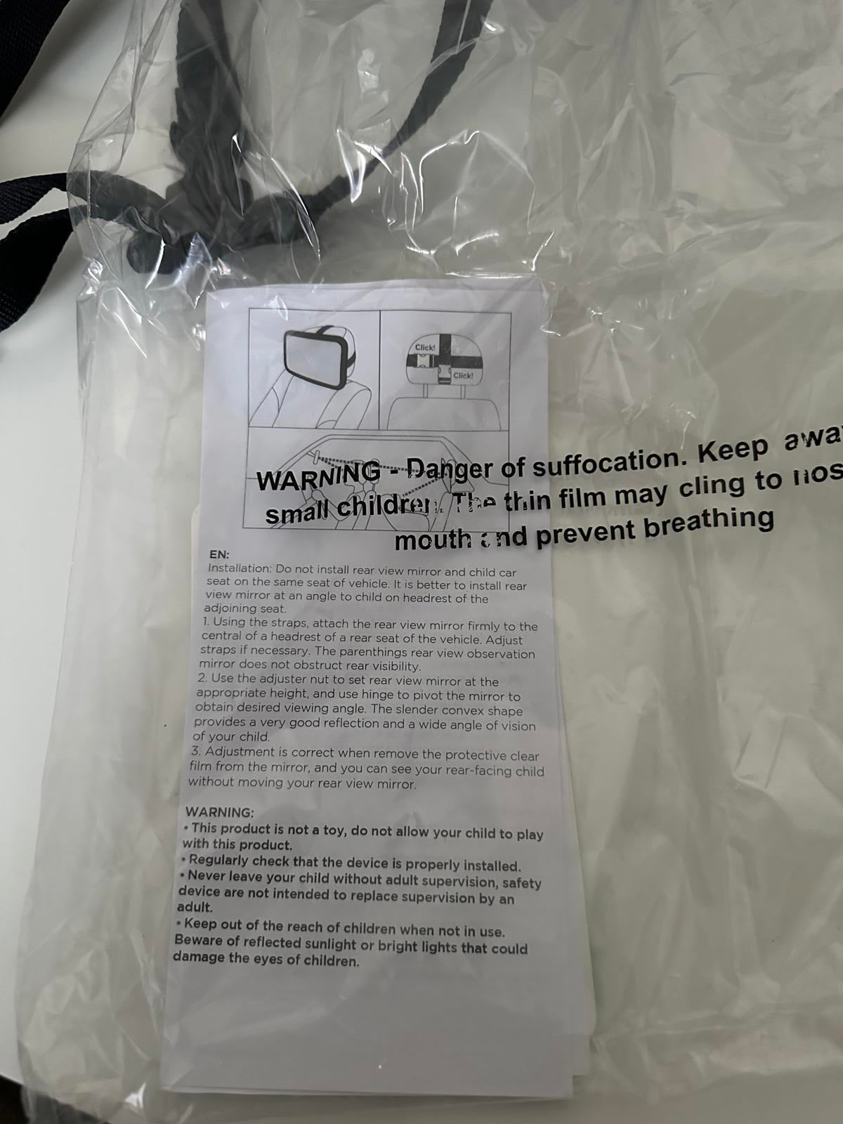 Keep eyes on your rear-facing baby without turning around. Large rectangular mirror with a slight convex for a wide view. Secure dual straps with quick-release buckles attach to the rear headrest; tilt/pivot mount for easy angle adjustment. Fits most cars/SUVs. Comes with box and instructions, ready to use.
