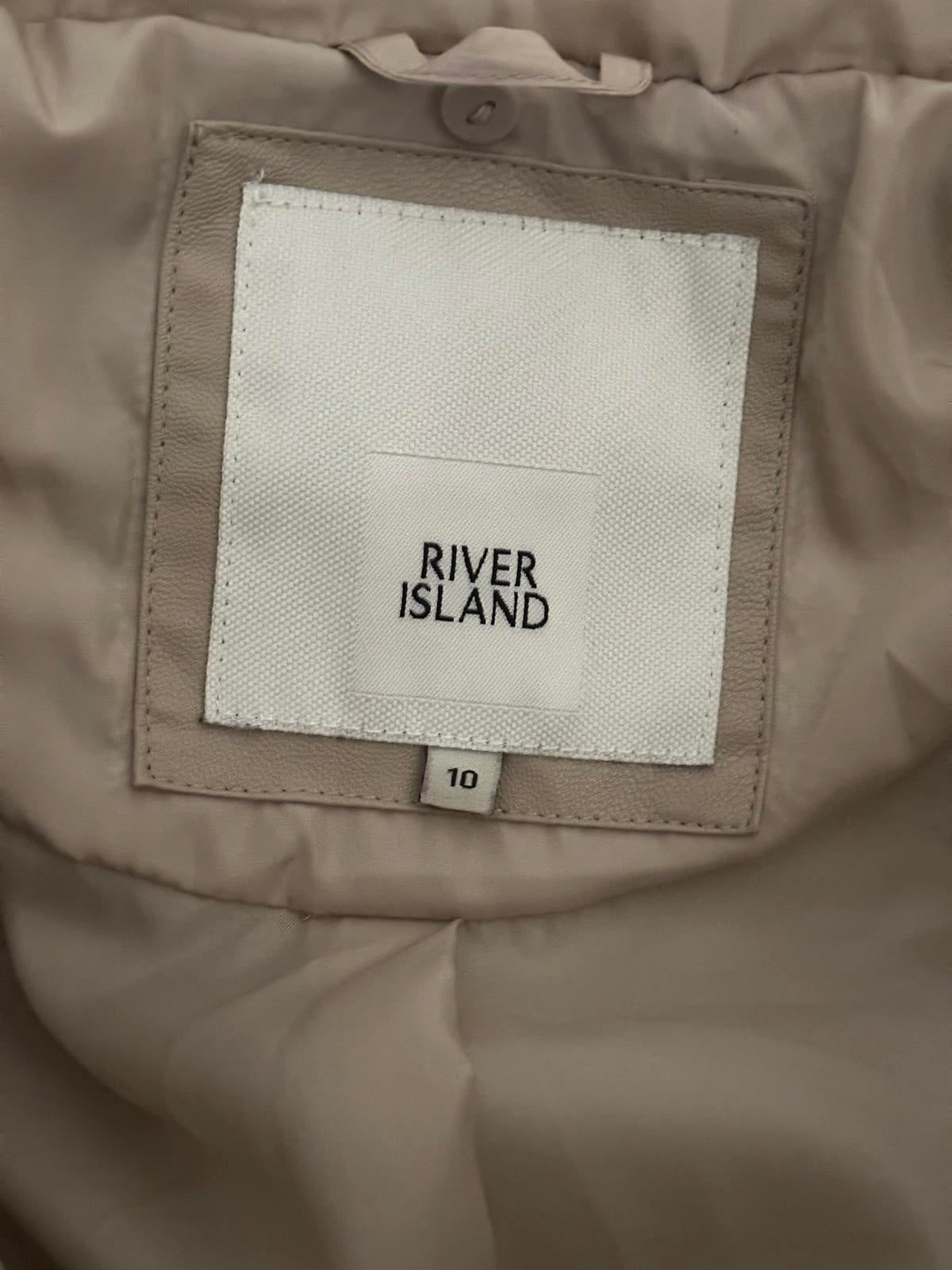 River Island Beige Quilted Belted Coat with Faux Fur Hood – Size 10