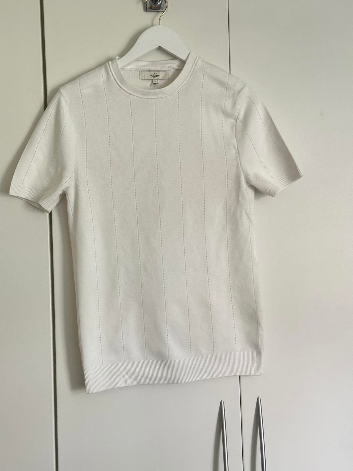 River Island White Ribbed Slim Fit Short Sleeve T-Shirt – Men's Size M