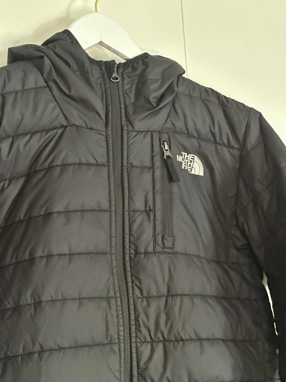 Stay warm and stylish with this The North Face youth puffer jacket. Lightweight yet insulated, it features a hood for extra protection, full zip closure, and multiple zip pockets including a chest pocket. Classic TNF embroidered logos front and back. Perfect for cold weather, school, or outdoor adventures.