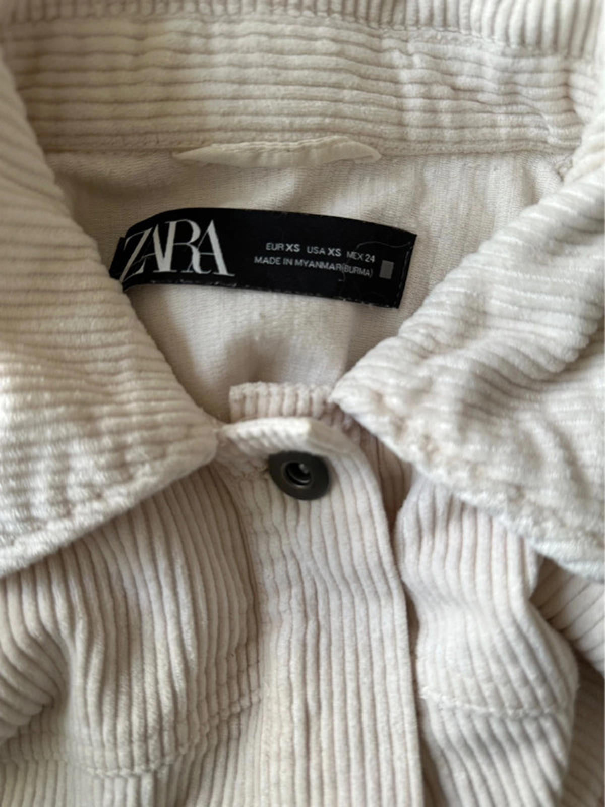 Elevate your wardrobe with this stylish Zara corduroy button-up shirt. Made in a soft cream colour, this shirt features a classic collar, long sleeves, and a chest pocket for added utility.